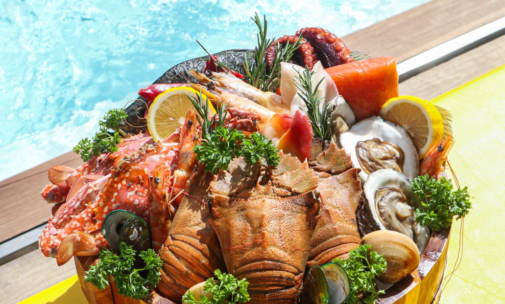 Indulge in a culinary journey at our beach club with an international fusion of flavors. Our menu features a diverse range of dishes, including our sashimi, seafood, fire-wood oven pizza, delicious pastas, Hummus & kebabs . Savor every bite while enjoying the stunning views of Karon Beach. Our extensive drink menu features a range of cocktails, spirits, and a carefully curated champagne selection. Whether you’re in the mood for a light bite or a full-fledged meal, our food & drinks are sure to leave you satisfied.